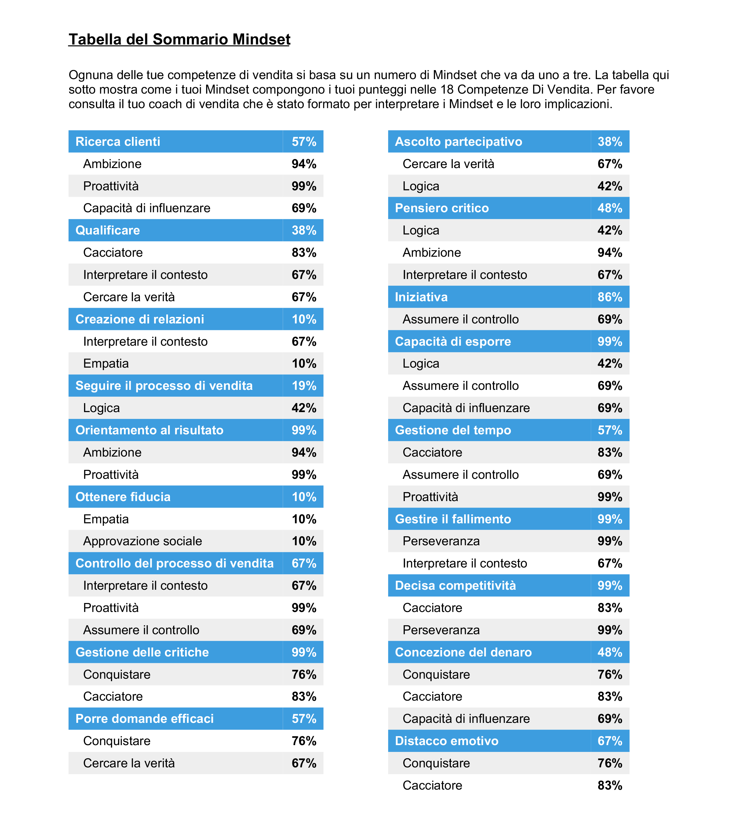 Valutazioni individuali e di team per sviluppo e coaching commerciale.